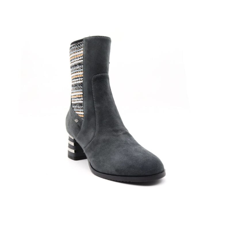 Ghete dama din piele naturala intoarsa gri cu accesoriu logo pe glezna si material elastic in diferite nuante de culori.