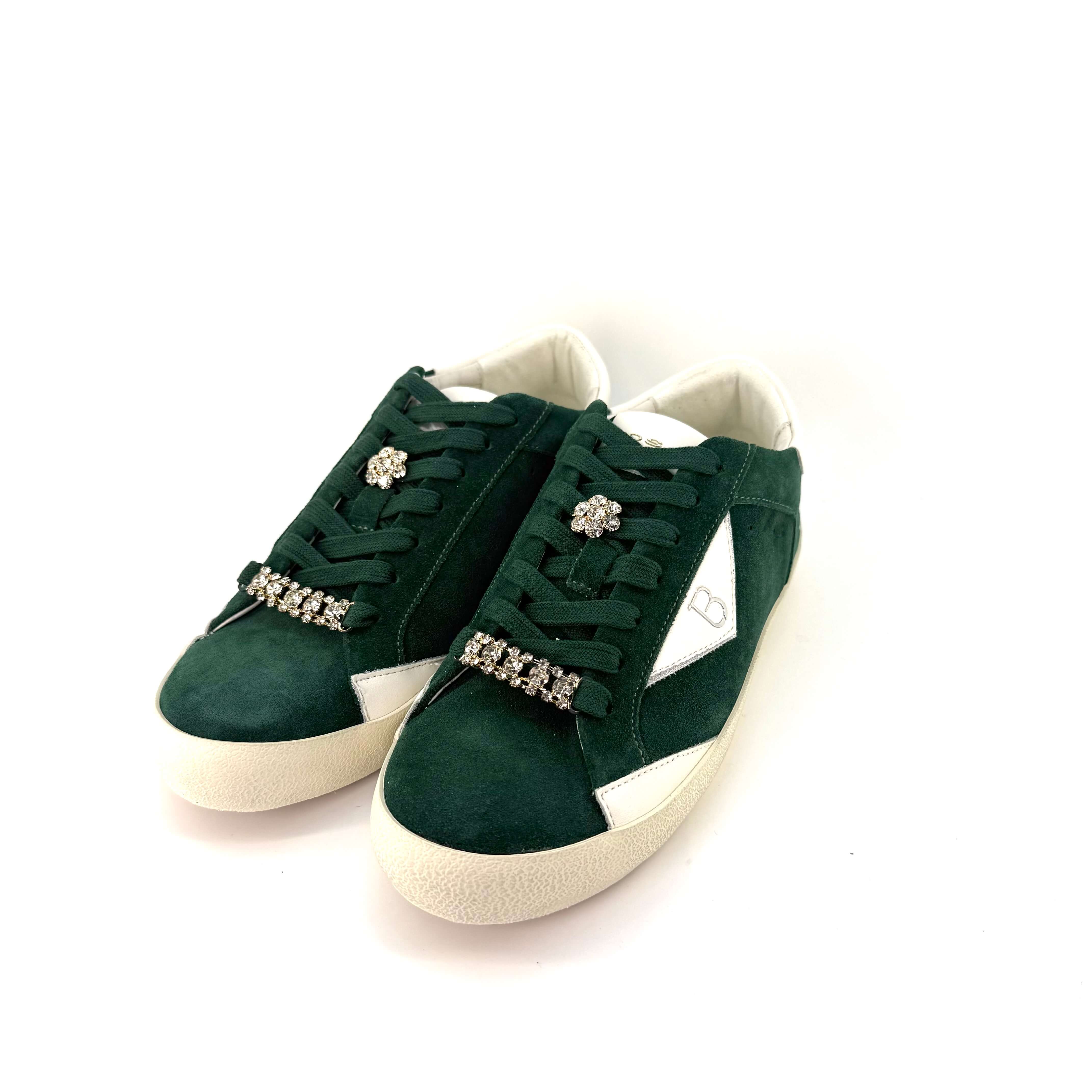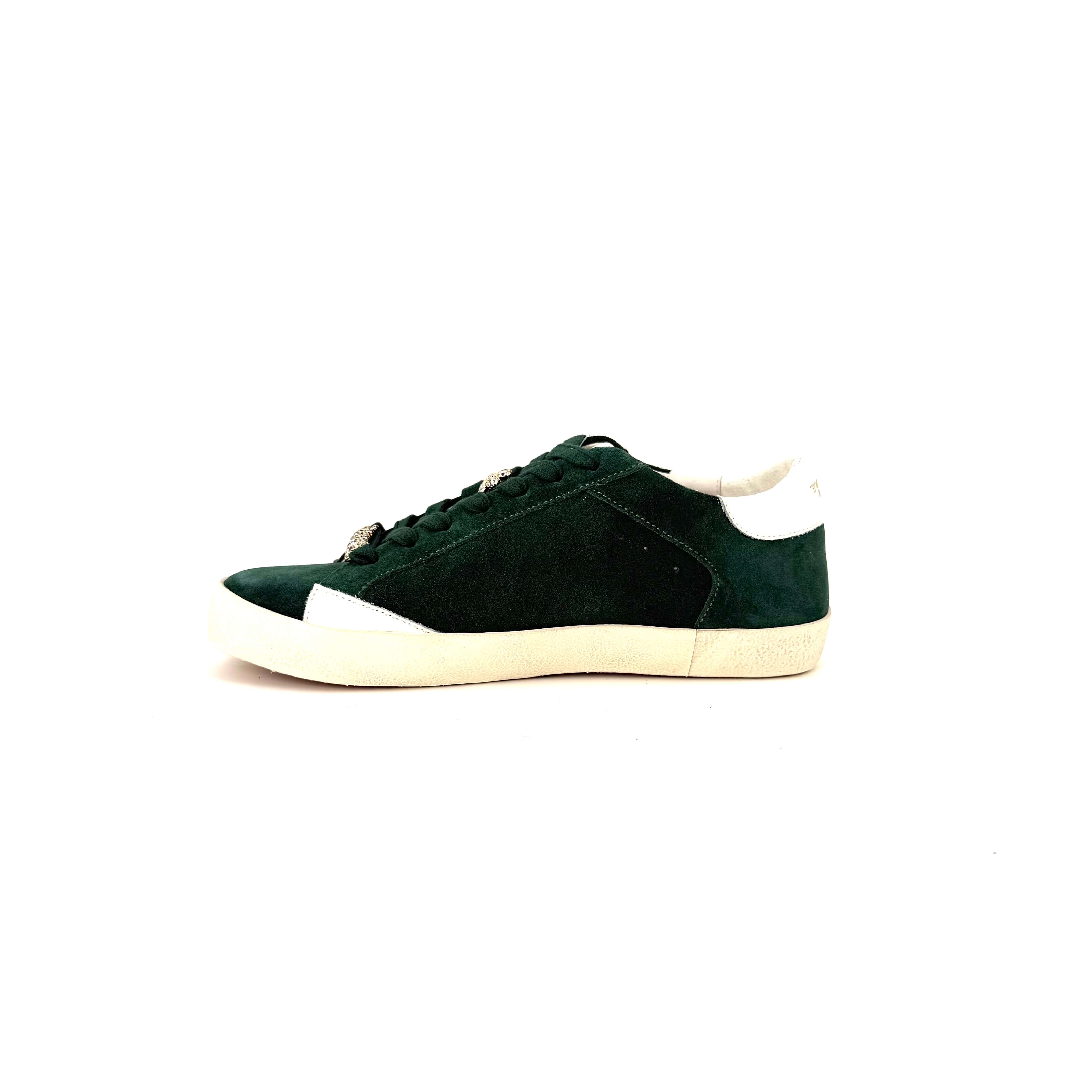 Pantof dama sport din piele naturala intoarsa moale de culoare verdesi impodobit cu detalii stralucitoare, impecabile,decorate cu bijuterii pe sireturi, care cu siguranta vor atrage atentia si vor amplifica instantaneu stilul.